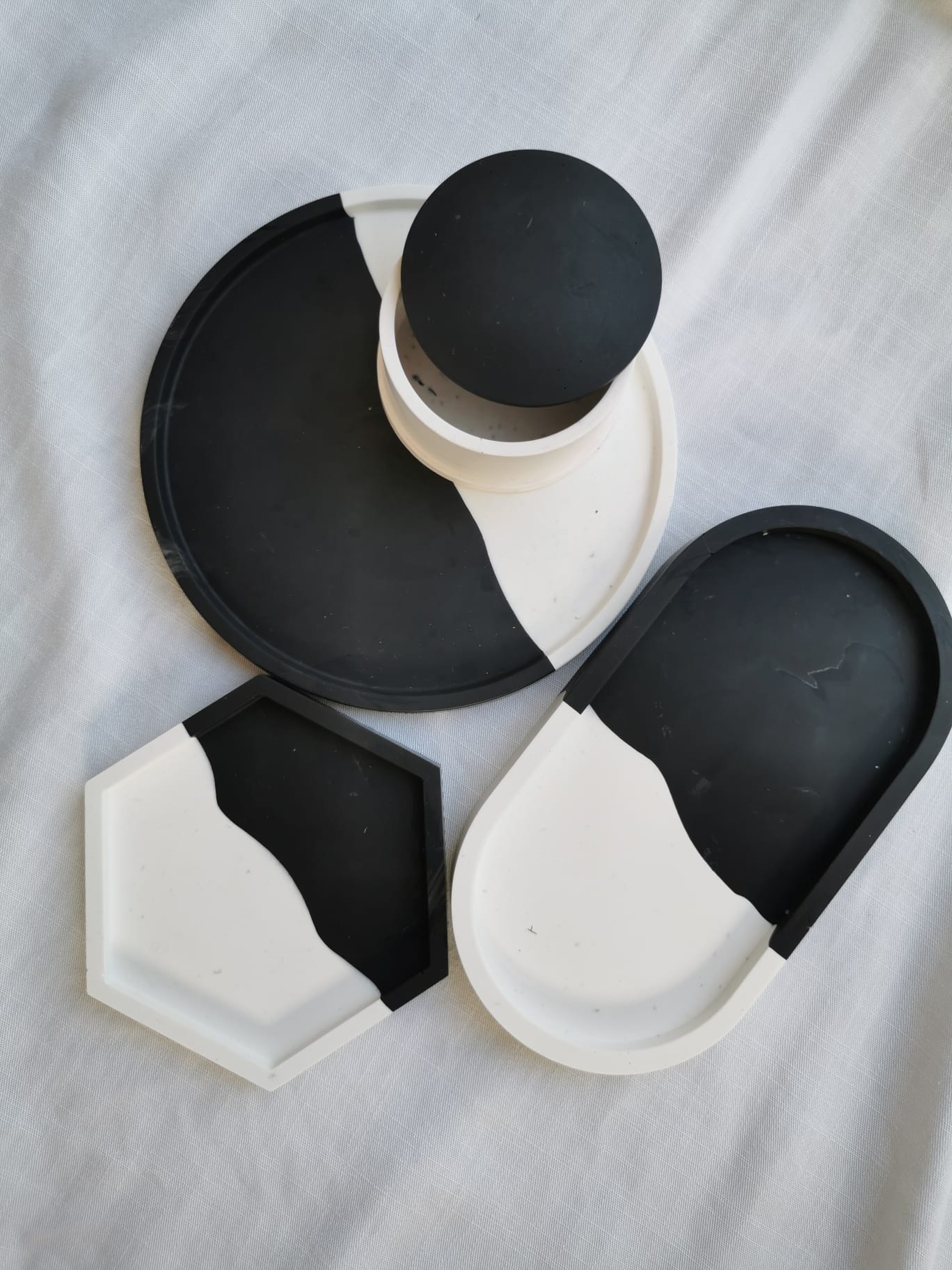 Sztukę użytkową z ekologicznego gipsu. Największym powodzeniem cieszą się mniejsze produkty uniwersalnego przeznaczenia, takie jak ręka Fatimy, owalna podstawka czy mydelniczki.